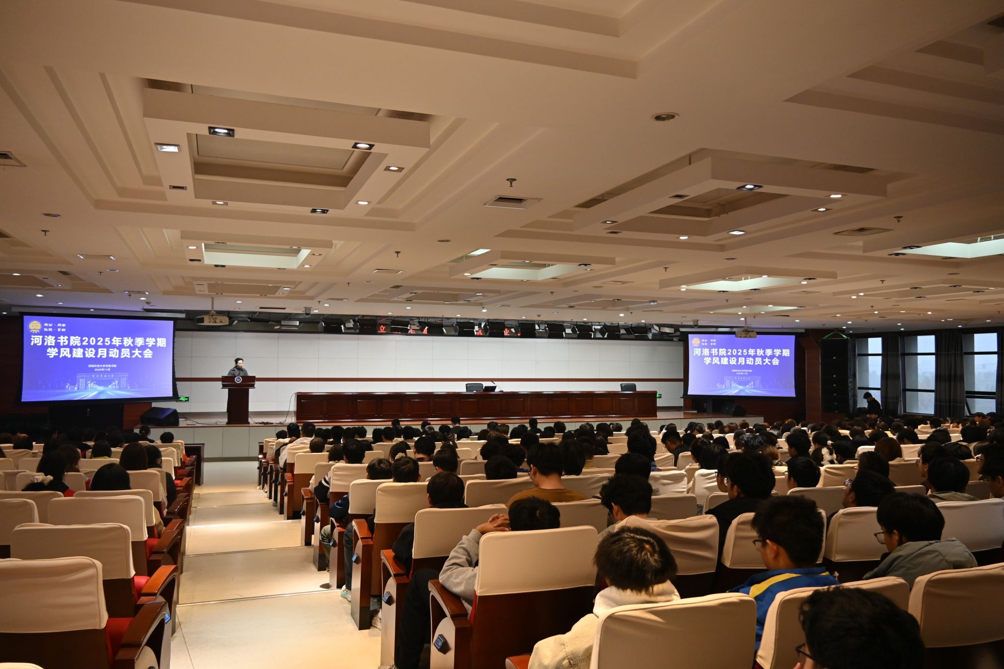 为深入推进优良学风建设,11月6日,河洛书院在图书馆522举行2025年秋季学期学风建设月动员大会。河洛书院党委书记、院长赵祥禄,党委副书记张晓丽,党委副书记、纪委书记崔瑞红,课外培养办公室副主任符真真,学业指导办公室副主任许元恺,2024级辅导员张毅炯出席大会。河洛书院学生事务中心副主任赵康迪主持大会。书院部分学子及学生干部参加大会。
