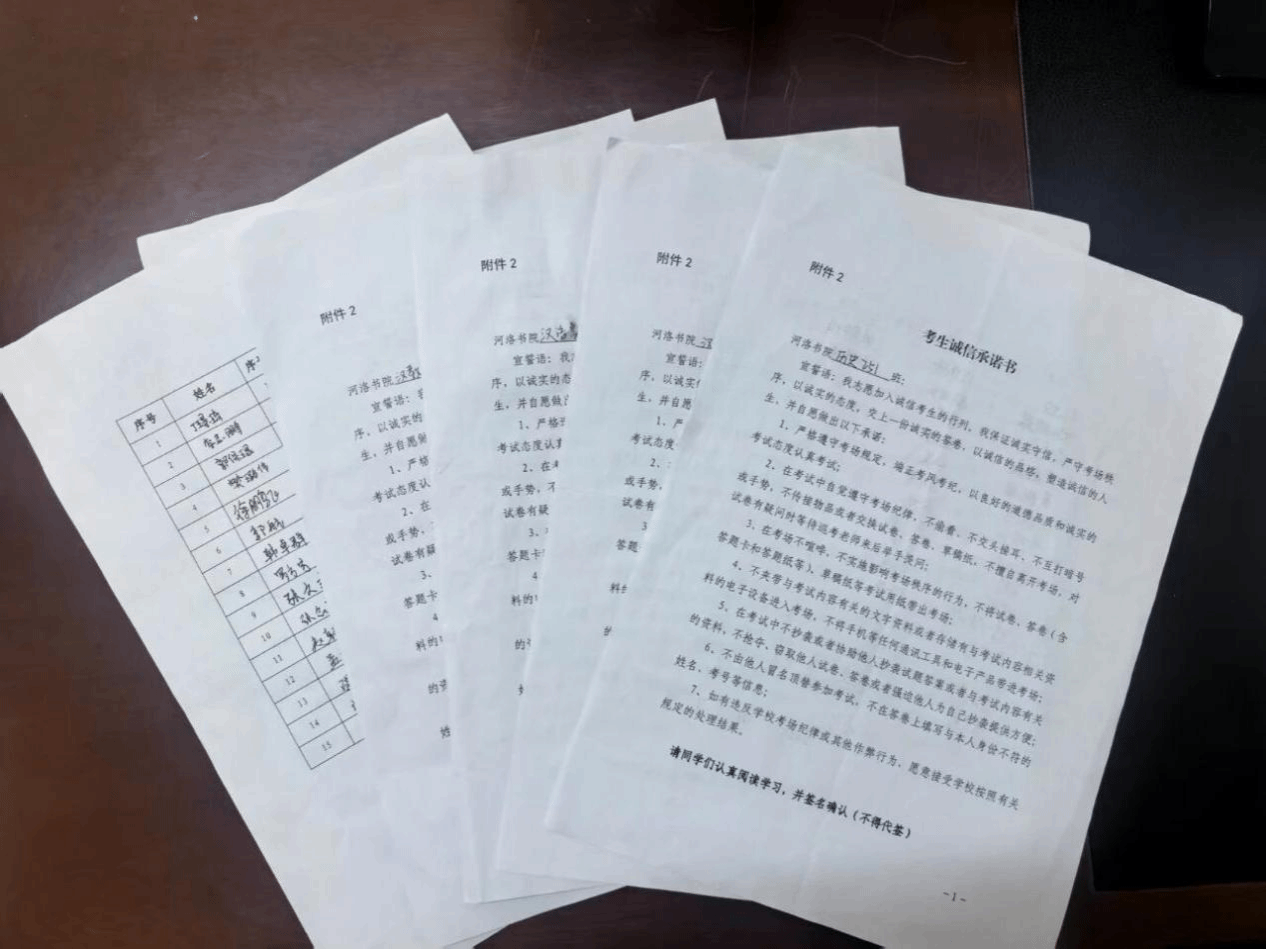 为强化学生诚信意识,培养学生诚信品质,引导学生遵纪守法,鼓励学生勤奋好学,推动形成优良学风,河洛书院近日组织全院各年级签订考生诚信承诺书。