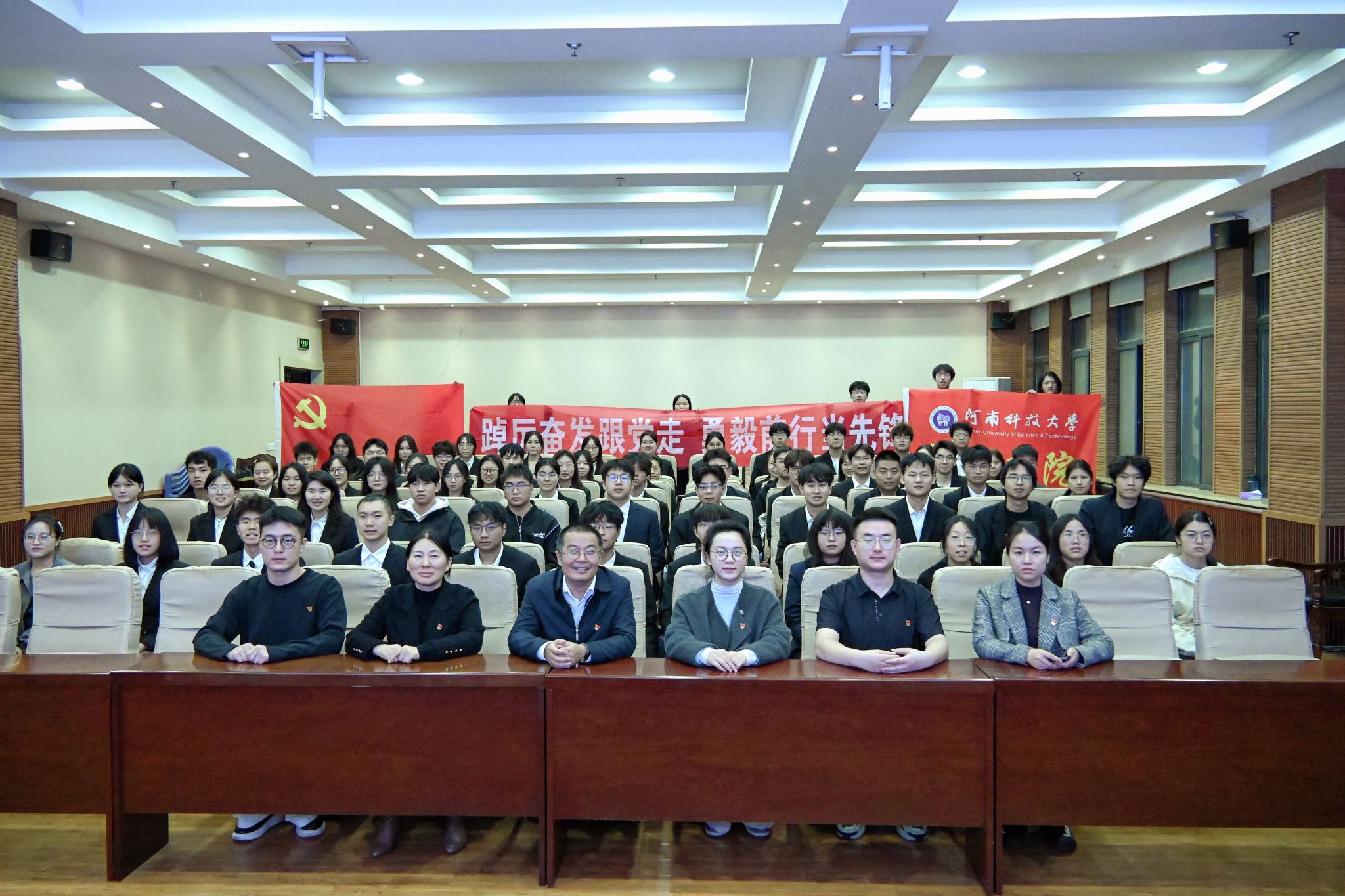 赵祥禄代表河洛书院党委向全体入党积极分子表示祝贺。他从“为什么入党”“成为党员应怎样做”两方面讲起,围绕“为公、问学、弘毅、日新”的院训,激励同学们树立正确的价值观,严格遵守纪律,将言语落实行动,以党员标准要求自己,传递青春正能量。