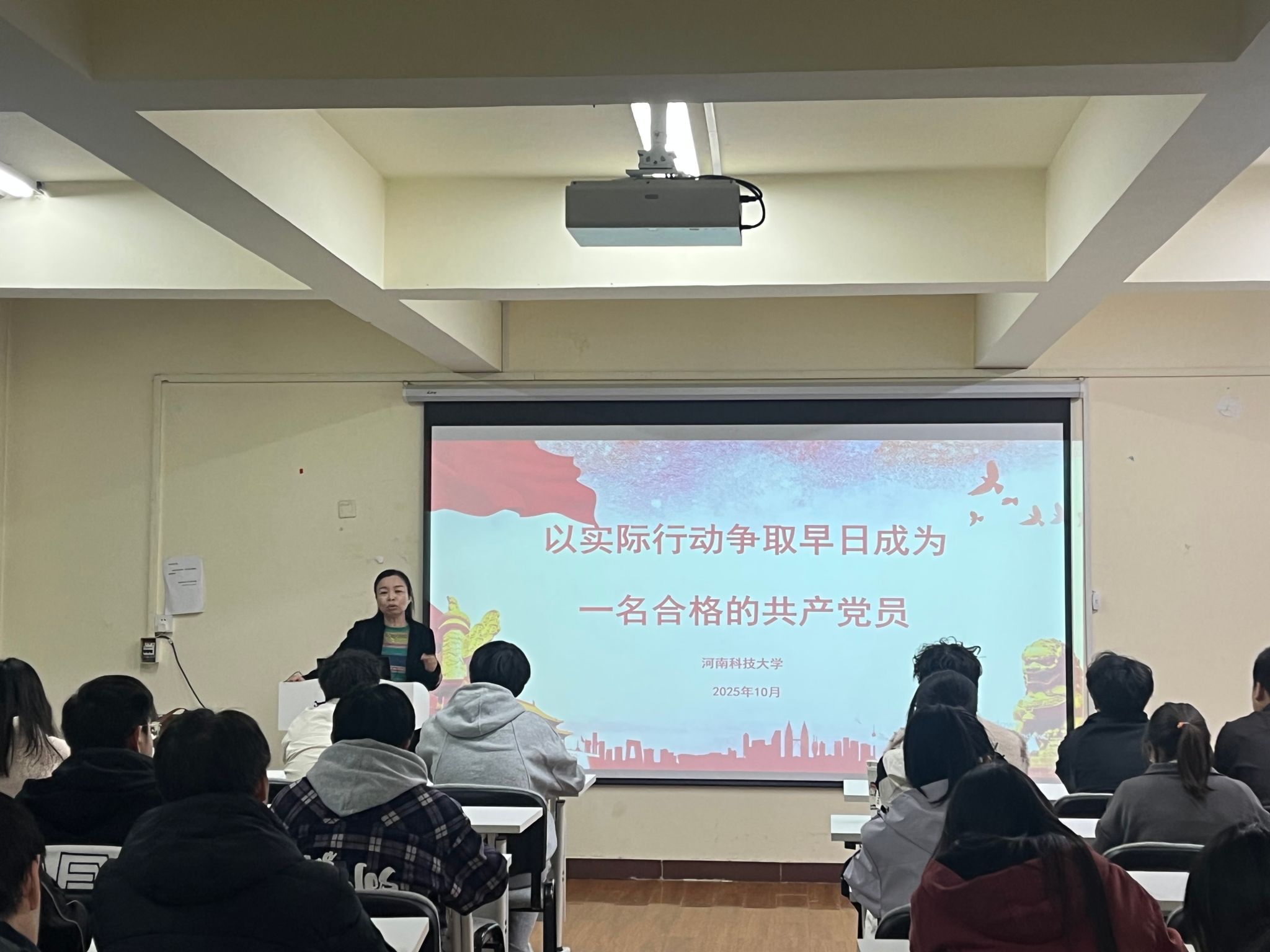 为进一步引导入党积极分子端正入党动机、坚定理想信念,11月3日,河洛书院开展以“以实际行动争取早日成为一名合格的共产党员”为主题的入党积极分子专题培训。本次讲座由护理学院党委书记赵秋燕老师主讲,第46期入党积极分子参加。